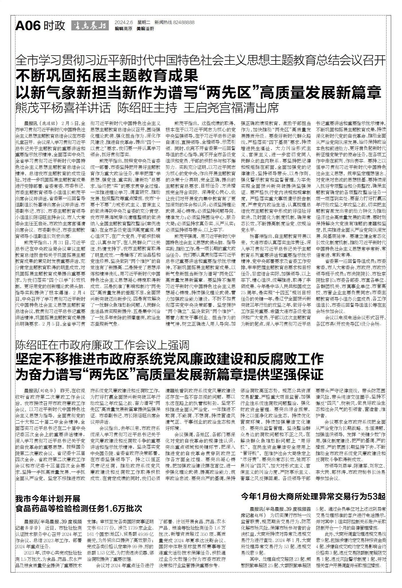 不断巩固拓展主题教育成果以新气象新担当新作为谱写“两先区”高质量发展新篇章