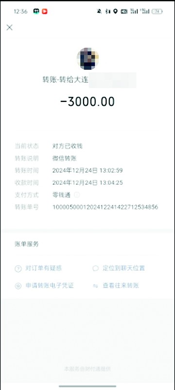 李女士表示,当天刘医生让她一次性将治疗费全部交完,“让我交3000元,我当时还想治疗一次交一次费,但对方执意让我一次性交完。”李女士说,当天她通过微信交了3000元钱。