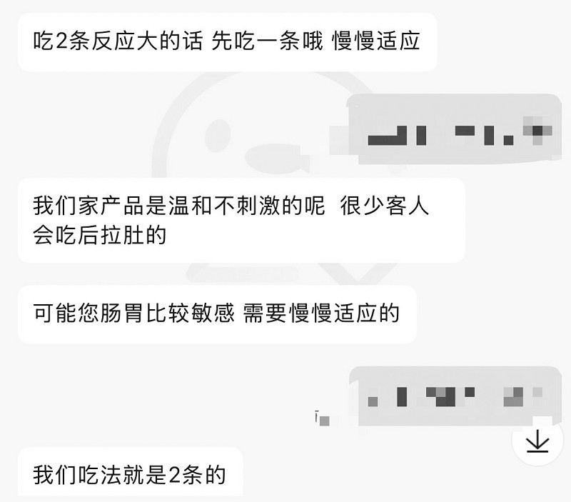 就食用后出现腹泻的问题,记者咨询了该店客服。客服解释称,该产品含有8大益生菌、9大益生元、36种五色果蔬,采用冷加工工艺制备,并通过明星菌株B420发酵生成高活性后生元,包含脂壁酸、多肽SOD、黄酮等物质,有助于“双向调节养护”。对于腹泻现象,客服建议可先停用产品或从每天一条开始逐步适应,并表示尚未接到严重腹泻的反馈,可能是“个人体质不同”,若消费者本身肠胃较弱,前期出现腹泻属于“正常现象”。