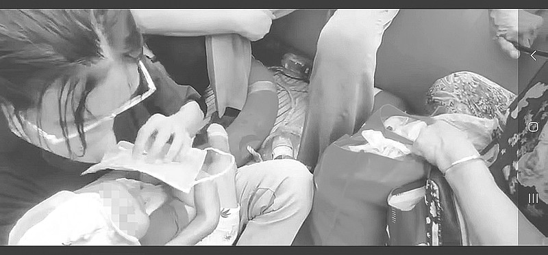 王选队长驾驶救援艇搜救到一处住宅楼时,突然看到二楼走廊的窗户被推开了,原来这里有一家三口,其中抱着婴儿的母亲激动地朝着冲锋舟挥手。此时水面已经淹没到二楼的下窗沿,救援队员赶忙将冲锋舟停靠在二楼走廊阳台处,小心翼翼地从母亲手中接过婴儿。最终,一家三口得以脱困,被救援艇载着驶向安全区域。
