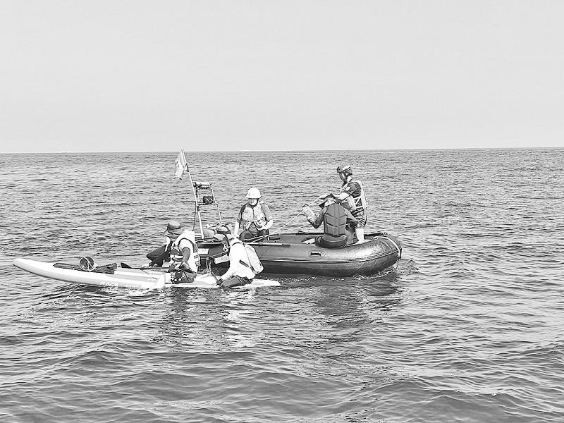 当日下午,执法人员乘“海巡030211”轮巡航至东西大连岛附近水域时,发现2名桨板爱好者因体力透支被困海上。情况紧急,执法人员第一时间协调调派附近值守的志愿者救援队火速赶往,成功将遇险人员安全转移。随后在傅家庄附近水域,执法人员又接连发现并施援:一名体力不支的游泳者和两名同样遭遇困境的桨板爱好者,均被安全救助上岸。