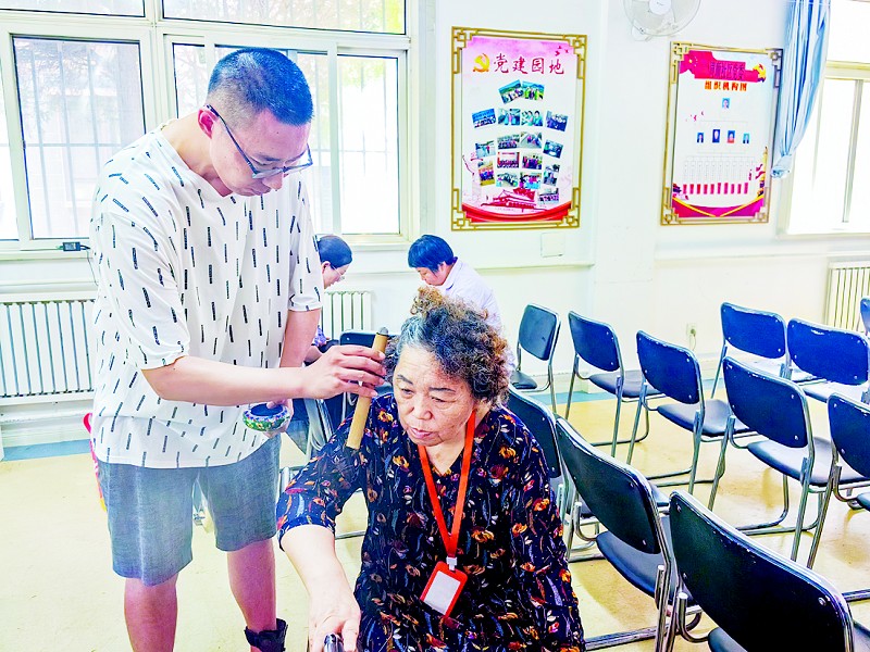 7月25日,与老支部书记李伟一同来到社区做调理的还有几位年纪大的楼长,常年为辖区居民付出,老楼长们身体或多或少都有一些小问题,腰腿痛的居多,杨永鹏与母亲一一为大家调理。李伟说,她患有小脑萎缩有20多年了,走路时时常摔倒,头部神经还经常疼,经调理后,整个身体都轻松了。