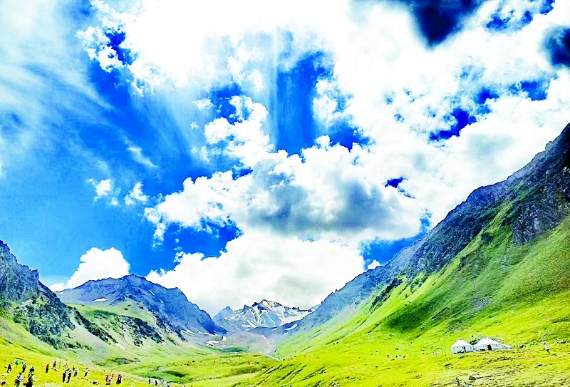 天山明珠:天山天池如镜,赛里木湖湛蓝,那拉提草原辽阔,独山子大峡谷壮美;