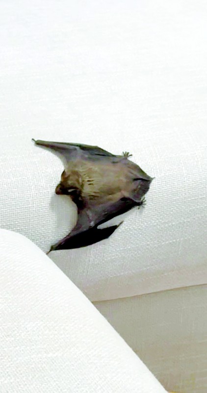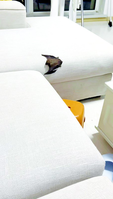 常女士回忆,8月22日凌晨1点30分左右,她正放松地沉浸在电视剧剧情中,突然,客厅里飞起一个“黑影”,这突如其来的状况吓了她一跳。“黑影”在客厅里一阵乱窜,最后停在了沙发上。她定了定神仔细一看,原来是一只大蝙蝠微折双翼趴在沙发边缘,不时发出阵阵尖叫,目测这只蝙蝠体长约有15厘米。意识到自己无法处理后,常女士紧急拨打了119消防救援电话求助。