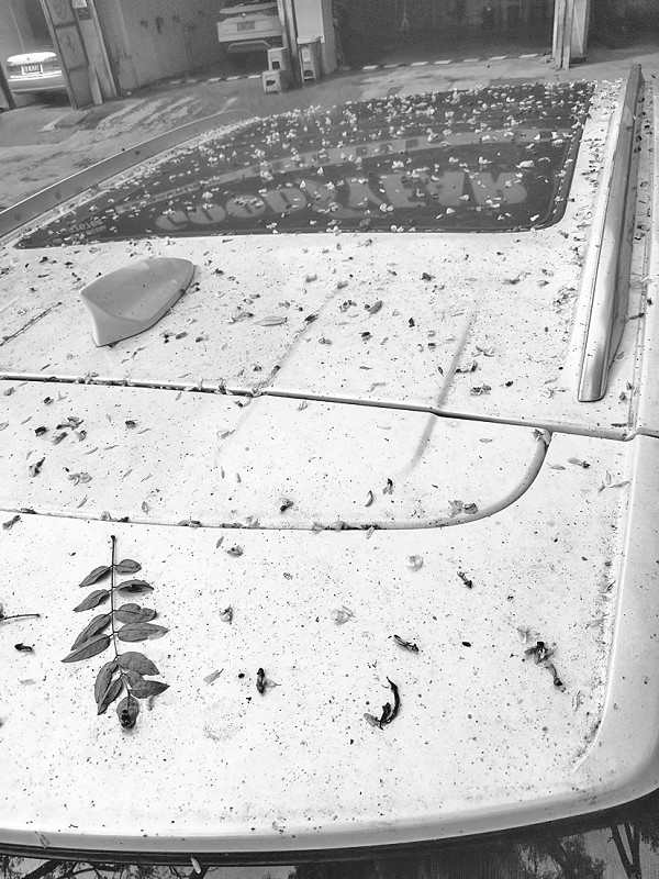 槐树上常见的蚜虫以嫩叶和嫩梢为食,持续吸取树木汁液。其排泄物俗称“蜜露”,会逐渐积累,最终以水滴状落下。由于蜜露中含有大量糖分,因此具有明显的黏性,一旦附着在车身上,便会形成难以清理的胶状物质。
