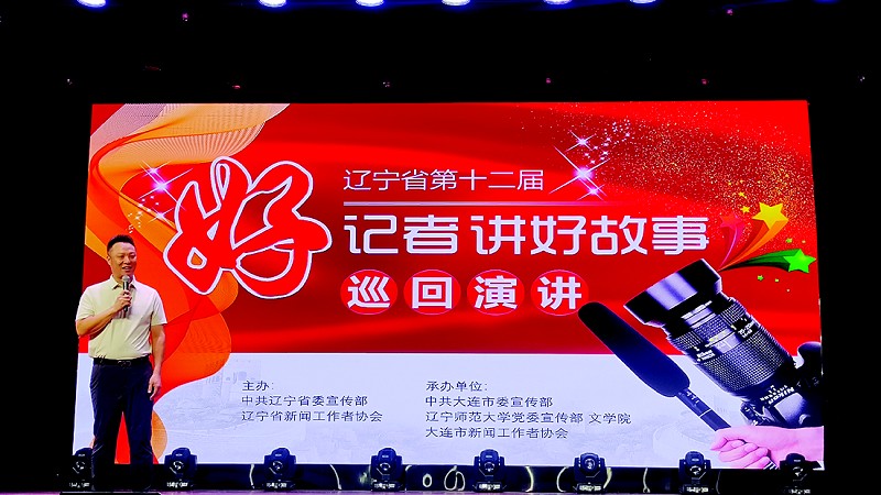 晨报讯(半岛晨报、39度视频首席记者黄凤桐文/图) 9月10日,由辽宁省委宣传部、辽宁省新闻工作者协会主办,大连市委宣传部、辽宁师范大学和大连市新闻工作者协会承办的辽宁省第十二届“好记者讲好故事”巡回演讲大连站报告会,在辽宁师范大学西山湖校区举办,我市各新闻媒体部分采编人员和辽宁师范大学、东北财经大学、大连理工大学师生代表参加了报告会。