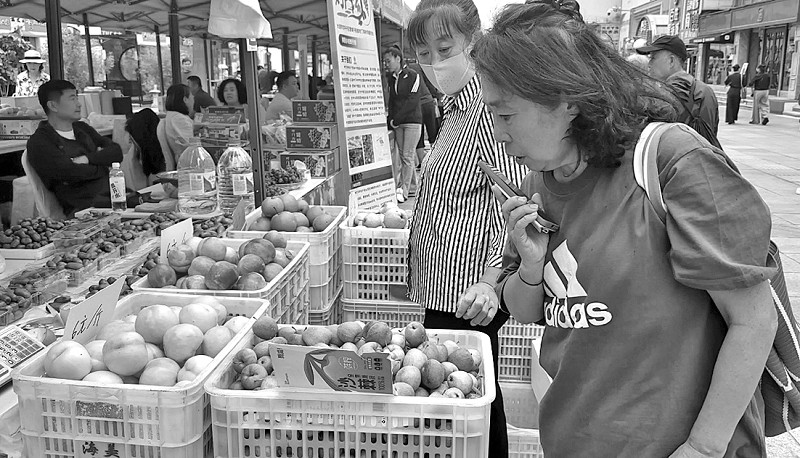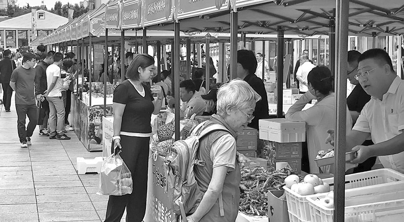 青泥洼商业步行街百米长的展销现场,极具大连特色的农产品、有机食品等一字排开,它们出自我市70多家农业龙头企业、农民合作社、家庭农场等新型农业经营主体。市民苑女士买了地瓜和花生,她觉得展示的农副产品都挺新鲜的,特意买点儿尝尝鲜。