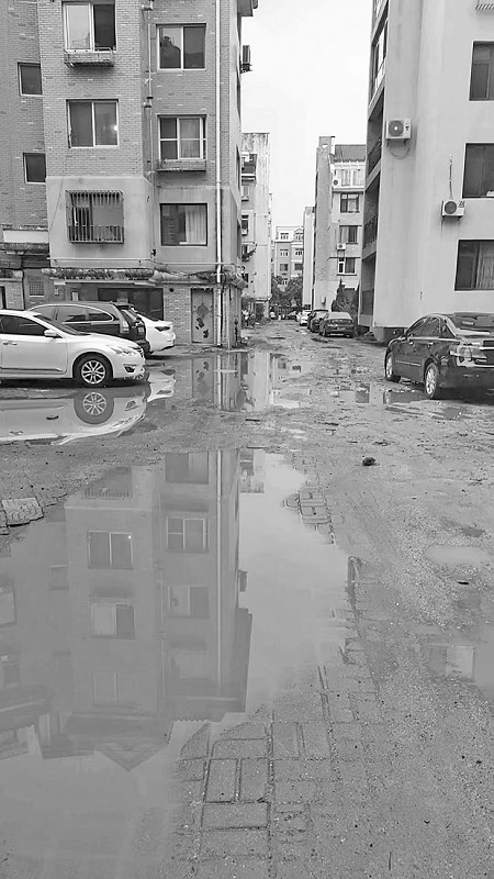 一晃两个多月时间过去,小区内道路一直保持着沙土回填后的状态。晴天时,未夯实的沙土被风吹起,小区内尘土飞扬,道路被蒙上黄色,居民出入只得掩面急行;雨天时,雨水混合着沙土又使得泥泞遍地,破碎凹陷的路面变成一个个水坑,给居民出行造成极大不便。