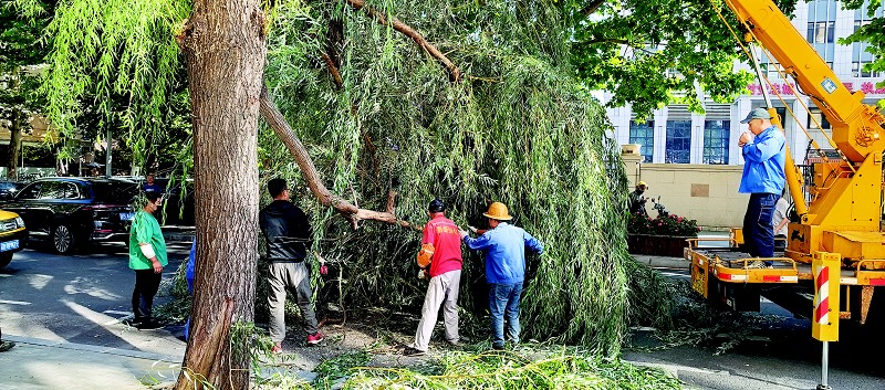 14时05分,居民求助热线接到紧急来电:西安路街道办事处附近一棵大柳树突然断裂,树枝瞬间将车辆包围。幸运的是,司机反应及时,第一时间撤离车辆,未造成人员受伤。
