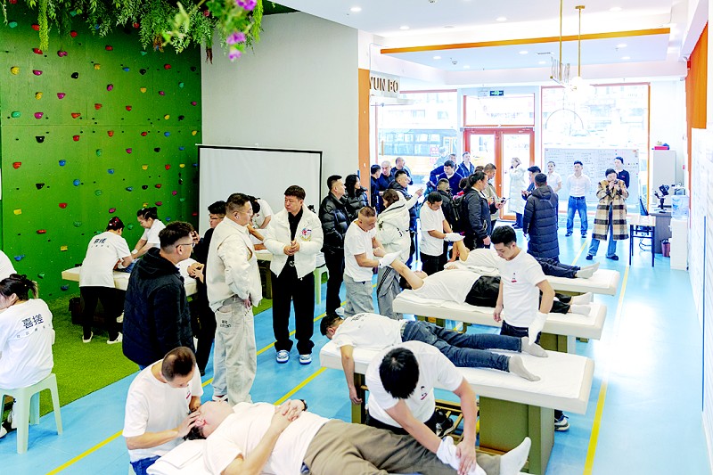 游学营转向更具烟火气的细分赛道。在“喜搓社区搓背馆”,学员们直观感受社区型洗浴的创新活力。作为搓澡细分赛道的先行者,“喜搓”以“市井文化+沉浸式体验”为特色,凭借“小而美”定位聚焦周边居民需求,以标准化非遗搓澡技艺保障服务核心,浅色系空间设计打破传统刻板印象;经营中砍掉非核心附加项目,聚焦“搓澡+基础洗浴”降低成本、提升周转率。学员们实地体验服务流程,与负责人深入探讨社区店选址、客群维护等实操问题,对“下沉市场洗浴业态创新”有了全新认知。