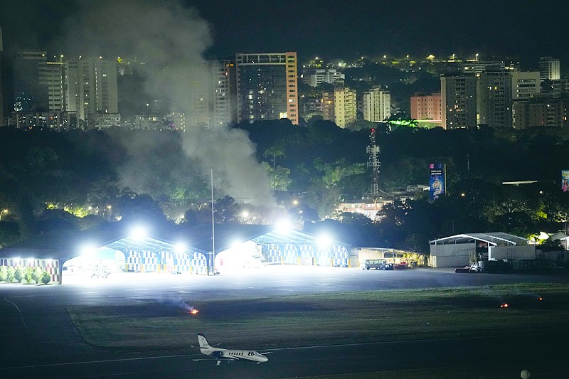 当地时间1月3日凌晨2时左右,新华社记者在委内瑞拉首都加拉加斯听到当地上空传出多声巨响。社交媒体上流传的照片和视频显示,首都多处地点升起烟雾,有民众在街上逃散。此外,有网民称看到直升机并发布照片。