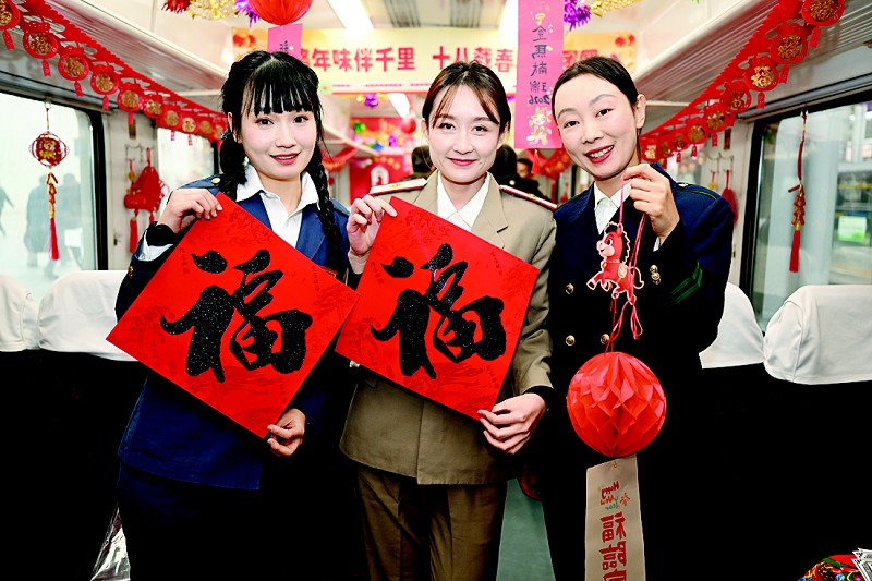 晨报讯(李杰 祝宸豫 半岛晨报、39度视频记者齐芳芳) 2月10日,农历小年,13时05分,大连至佳木斯K4833次列车缓缓启动。窗外寒风凛冽,车窗内却暖意融融,这趟由大连客运段担当乘务的春运临客,被旅客亲切地称为“回家专列”,至今已连续开行18年。“糖瓜、瓜子摆满了餐桌,列车工作人员通过唱歌、猜灯谜、送福字等互动形式让我们感受到年离我们近了,家也更近了。”乘客宋女士笑着说道,言语间满是归乡的喜悦。小年当天,大连客运段在列车上精心举办“一路年味伴千里 十八载春秋护团圆”主题活动。歌舞、灯谜、送福、互动游戏……车厢化作流动的“年味空间”,让漫长的归途变成了一场温馨的聚会。