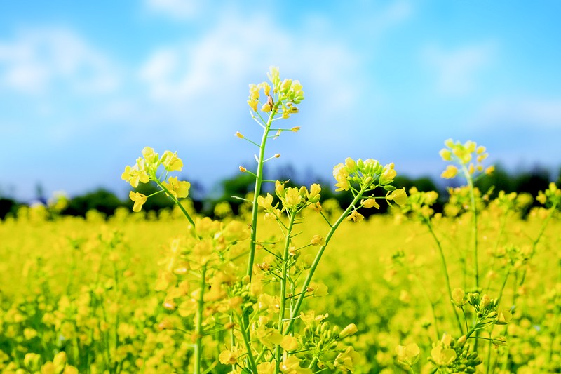 蜡梅顶着寒风绽放,花瓣呈蜡质嫩黄,香气清冽;迎春花以金黄缀满绿枝,被称作“金腰带”;连翘开出亮黄繁花,远看如金色瀑布;金钟花与连翘相近,花色明快;云南黄馨带着柔和的鹅黄,枝条柔垂;田野间的油菜花铺成鲜黄花海,气势壮阔;蒲公英顶着明黄花盘,在路边随处可见;山茱萸先花后叶,细碎小花聚成金黄花团;结香则以鹅黄花序,在枝头舒展。这些黄色深浅有别,或淡雅、或浓烈,共同点亮了早春的底色。它们的共同特点是都是黄色系。