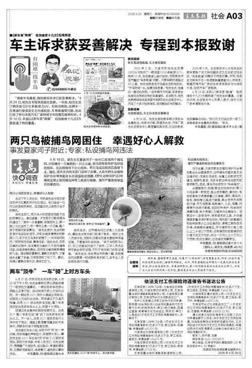 两只鸟被捕鸟网困住 幸遇好心人解救