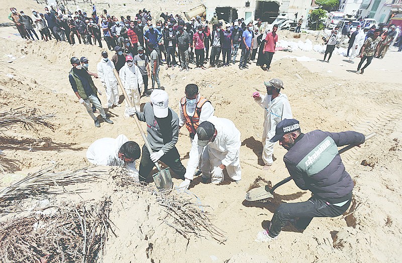 加沙民防部门官员说,在纳赛尔医院寻找尸体的工作将持续至25日。