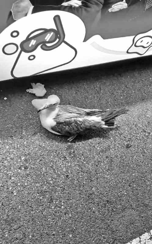7月30日晚7点左右,市民王女士和家人来到星海广场参加啤酒节,正当他们漫步在海鸥市集中时,一只海鸥落在他们身旁的地面上,引起了大家的注意。“看到这只海鸥脖子处鼓起大包,撑得和嘴一样长!”王女士担心这只海鸥吞食异物,可能导致它无法进食从而危及生命。“它落在人类身旁,可能是在向我们求助,就决定帮它把异物取出来。”王女士说。
