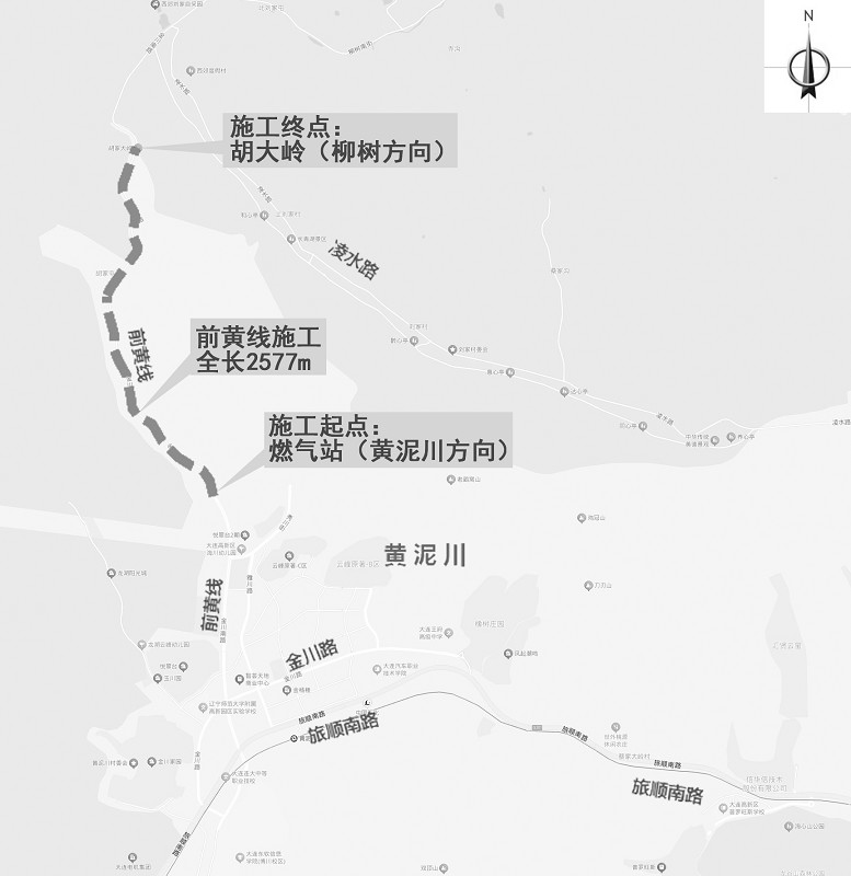 高新区住建局将首先对前黄线进行施工,具体为胡家大岭至大连天然气高压管道有限公司黄泥川高中压调压站,拟计划施工时间为今年8月17日至8月31日,全天候全幅封闭施工。