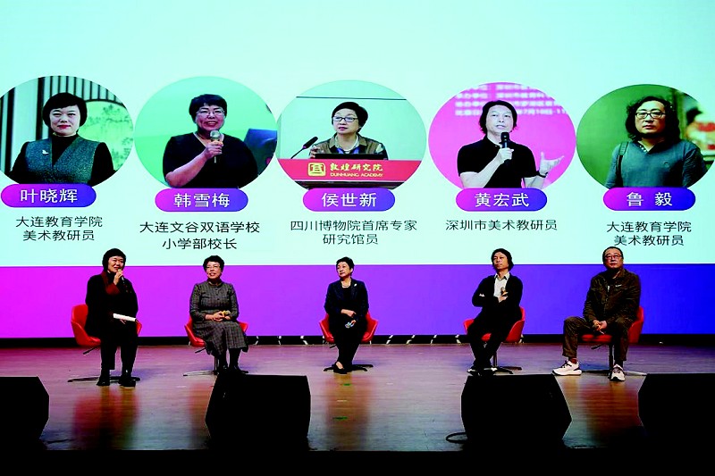 培训会上,大连市第二十八中学刘深楠老师、深圳市龙华区高峰学校李维老师带来了生动的课例展示;深圳市美术教研员、人美版新教材分册主编黄宏武老师做《新课标·新教材背景下的大单元教学》专题讲座;四川博物院首席专家侯世新研究馆员做《丝绸之路上的敦煌》主题讲座。大连教育学院艺体劳研训中心杨俊伟主任结合全市中小学校美育特色建设情况,介绍了博物馆美育“馆校联合”活动开展的经验与成效。