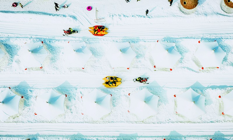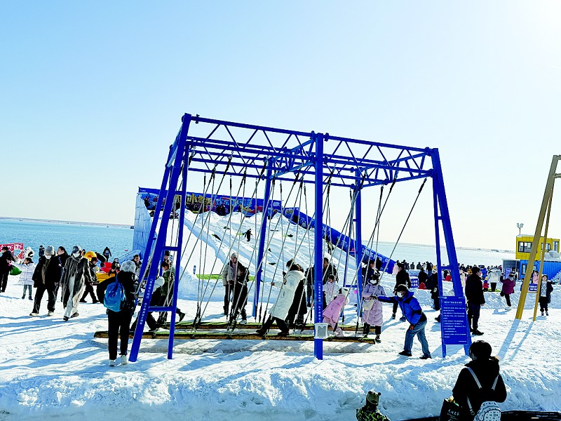 冰雪项目依旧是旅顺冬季旅游的主旋律。塔河湾冰雪嘉年华是坐落在沙滩上的冰雪乐园,雪景与海景交相辉映。各类雪上活动应有尽有,满足了全龄段游客的游玩需求。此外,景区内的“美食小火车”让游客可以在品尝美食的同时,欣赏到美丽的雪景和海景,享受一场视觉与味觉的双重盛宴。牡丹小镇的戏雪乐园为游客打造了优质雪场,配备了丰富游玩设施,雪地飞碟、旋转小蜜蜂等项目深受孩子们的喜爱,他们在家长的陪伴下,尽情地在雪地上嬉戏玩耍,尽情释放着童年的快乐。游玩之余游客在这里还可以享受到贴心的服务,游客们可以在休息大厅里休息、聊天、品尝美食,尽享悠闲时光。