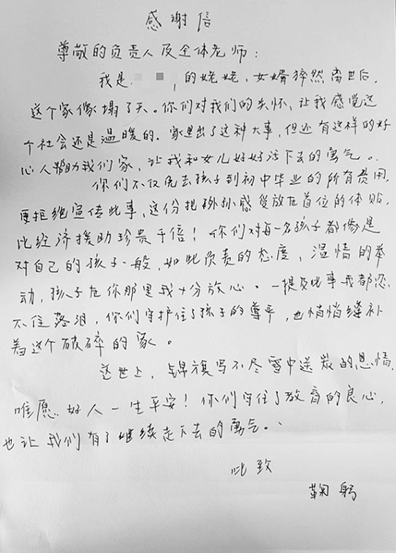 6月27日,记者拨通了这家教育机构的电话,向校长转达了赵女士深切的感激之情。电话中,校长的回应朴实而温暖:“我们得知后,就不能不管。我们也是能帮多少就帮多少,尽最大能力去做。”校长坦言,考虑到孩子刚上初一就失去了父亲,家庭负担沉重,减免费用是机构能力范围内的“举手之劳”。