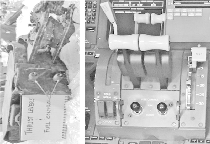 报告说,客机坠毁前,控制两台发动机燃油流量的开关在一秒内先后从“运行”切换至“切断”位置。驾驶舱语音记录器的录音中可以听到其中一名飞行员问:“为什么要切断飞机供油?”另一名飞行员回答:“我没有”。