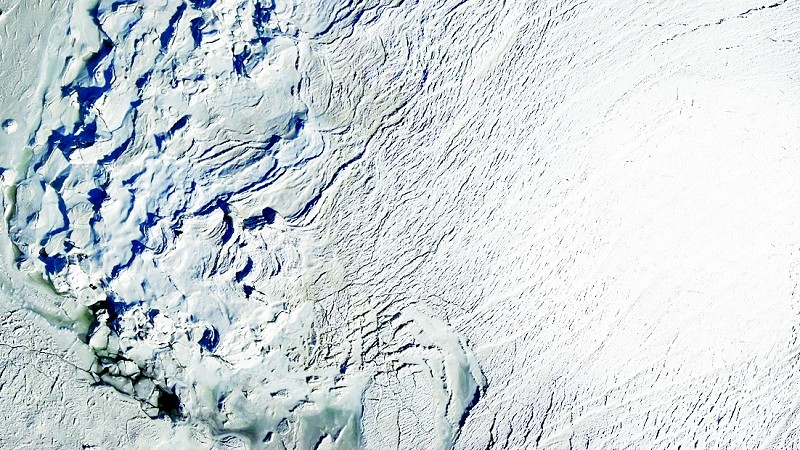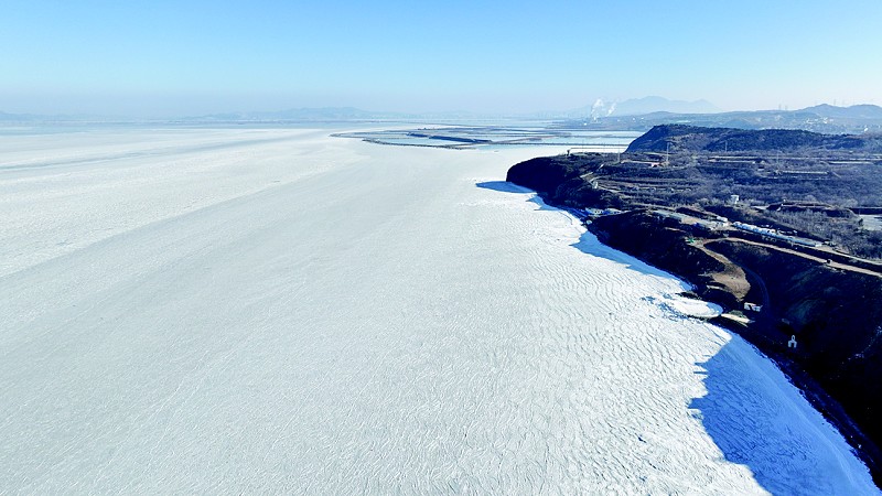 1月22日,受近日连续降温影响,渤海湾再次出现千里冰封的壮观景象。在甘井子区泊霞湾公园附近,岸边的海水已经冻成了白色的海冰,放眼望去,连绵不绝的海冰一直向大海深处延伸,之前蔚蓝的大海已经变身为一片苍茫的白色,仿佛来到了冰封的极地世界。
