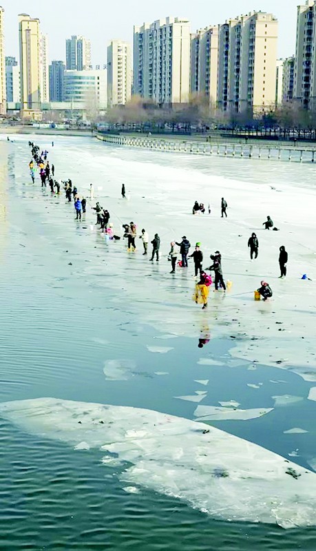 宋先生注意到,这些钓友为了方便捕捞大多站在冰面边缘,身前就有已经碎裂的浮冰,景象令人担忧。“一旦冰面因气温回升或承重过大发生破裂,人员落水将直接危及生命安全。”宋先生希望通过本报提醒广大市民,休闲娱乐务必以安全为首要,切勿因一时收获而置身险境。