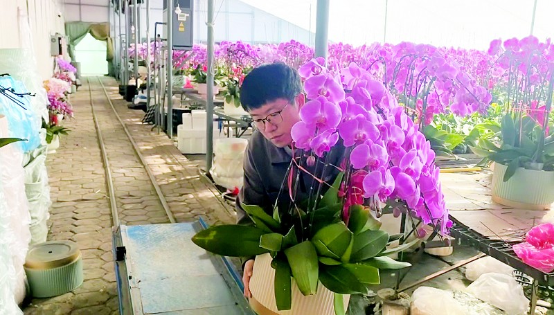 基地的产品主要销往大连本地,并覆盖东北三省市场,在华北及江浙个别城市也有销售。“往南发货我们没有优势,运输距离太长,成本高。”张圣闻分析道,“但在东北地区,我们的品质有口皆碑。蝴蝶兰花期长,寓意‘福禄吉祥’‘幸福美满’,既有观赏价值又有文化内涵,是家庭装饰、办公点缀和节日送礼的热门选择。”据了解,基地的蝴蝶兰售价在300元至500元区间,因品相上乘、养护方便,始终保持热销态势。张圣闻表示:“今年春节,江浙沪地区的订单也多了起来,但我们优先保障东北市场的供应。”