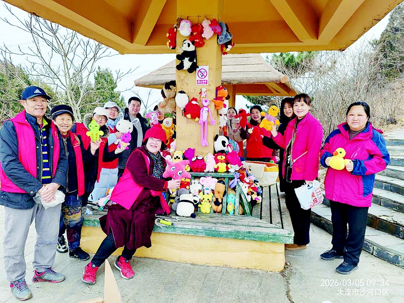 晨报讯(半岛晨报、39度视频首席记者张锡明) 3月5日,在第63个学雷锋纪念日到来之际,沙河口区富国公园蘑菇亭迎来了焕新时刻。此前,这座黄柱圆顶的凉亭只是登山路上一处朴素的休憩点,如今,志愿者们用大家捐赠的闲置玩偶加以装扮,让旧景焕发出新活力。
