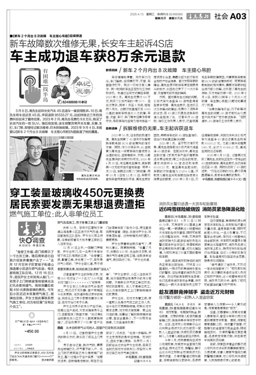 穿工装量玻璃收450元更换费居民索要发票无果想退费遭拒