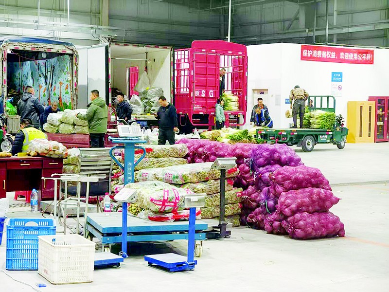 走进蔬菜交易区,时令果蔬分门别类、码放整齐,卸货、分拣、报价、装车……批发商们穿梭其间,秩序井然。