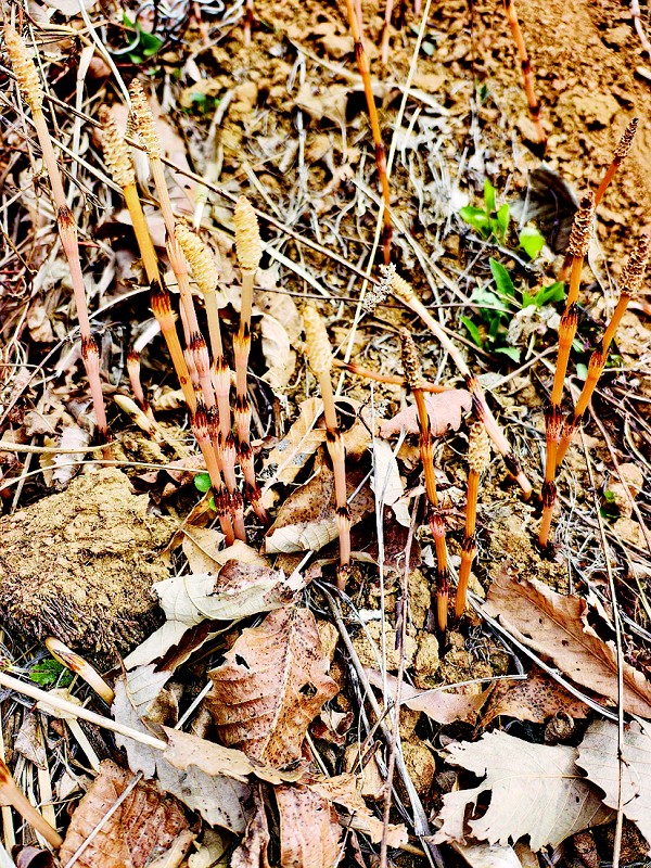 孙先生满心疑惑,便跟随儿子的指引来到一片空地。儿子指着地上的植物说:“这是问荆草,长这种草的地方,下面很可能有黄金。”孙先生并不认识问荆草,于是掏出手机,用手机网络查询进行比对验证,结果显示,这的确是问荆草。