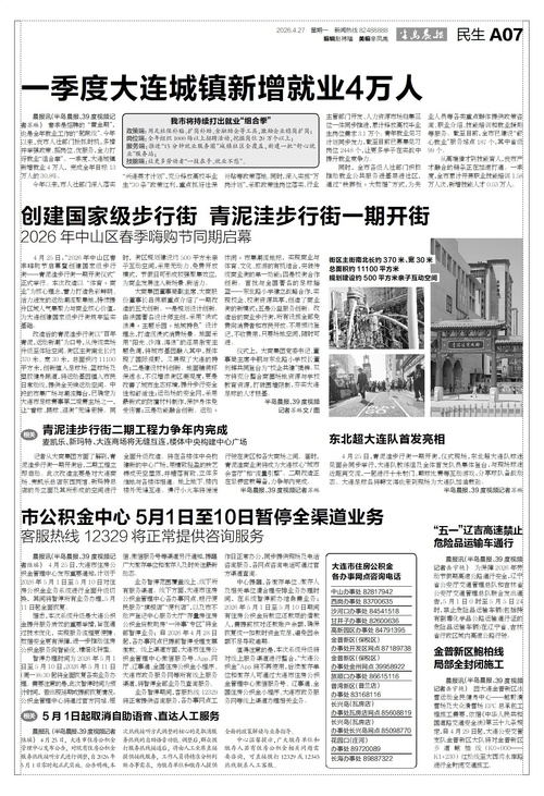 一季度大连城镇新增就业4万人
