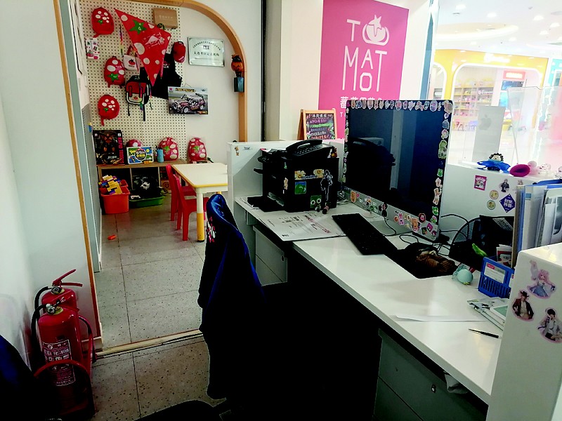 4月22日,记者来到和平广场的蕃茄田艺术。记者现场看到,办公区座椅上挂着工作服,地上散落着少儿玩具,办公桌上的办公用品一切如常,还有一台苹果牌电脑,以及几个收件人为“张某昕”的快递。要不是教室的灯关着,门锁着,墙上张贴着的“停业”提示,现场有多位驻足维权的学员家长,很难让人相信这家机构已经关停近一个月了。